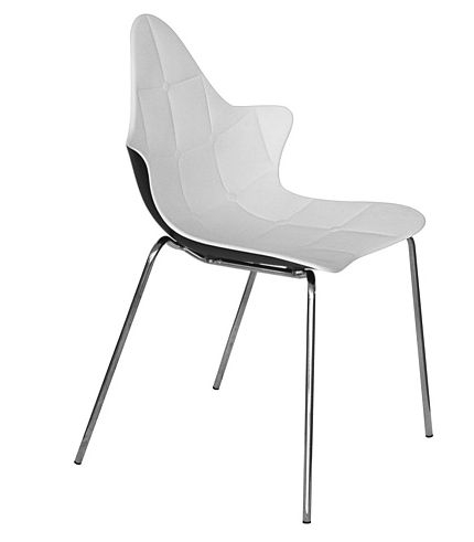 Moderní jídelní židle vhodná do barů, kaváren i domácností. Rám židle je kovový, sedák je z dvoubarevné polyuretanové pěny, která vzorem a texturou evokuje čalounění.