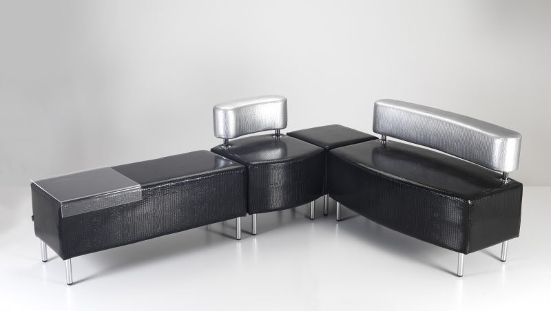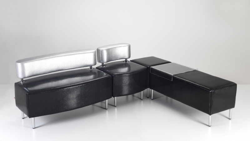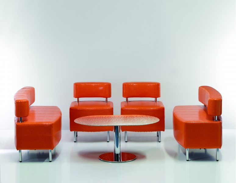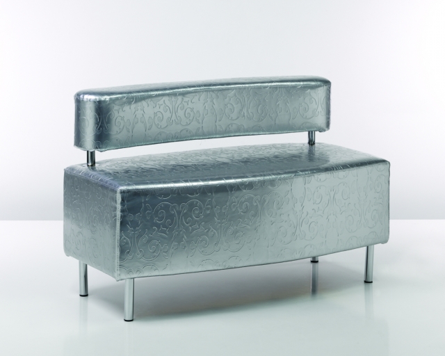 Dvoumístná čalouněná pohovka s ocelovým rámem v povrchové úpravě chrom. Pohovky CANDY jsou součástí modulárního sedacího systému skládajícího se z křesel, pohovek, taburetů a stolků.