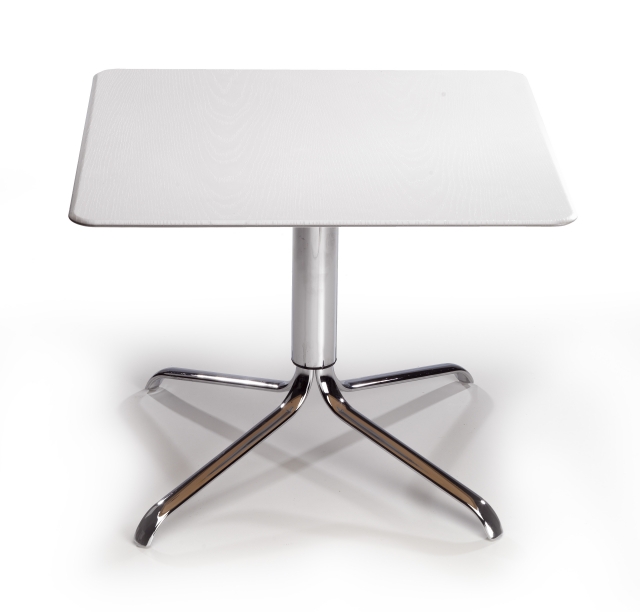 Nízký jídelní stůl italské výroby s kovovým rámem v povrchové úpravě chrom. Stolová deska 60x60cm, materiál Solid laminate. Stolové podnože jídelního stolu Spider je možno také kombinovat se stolovými deskami ø60-70-60x60-70x70cm.
